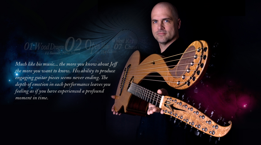 Born in Massachusetts, at a very early age Jeff picked-up his mother’s ukelele and started strumming just to accompany her beautiful singing voice. While Jeff desperately wanted to play the banjo, his mother suggested he learn the guitar first... and so began Jeff’s self-instruction on the instrument. Early-on he worked-out simple fingerpicking compositions of his own, keeping his guitar playing to himself for the most part.
